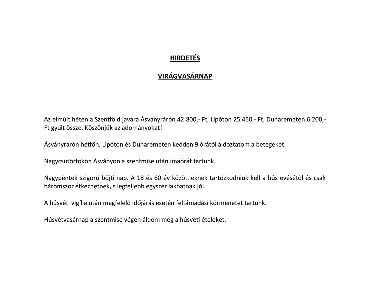Plébánia hírek 2026.03.29-04.04.
