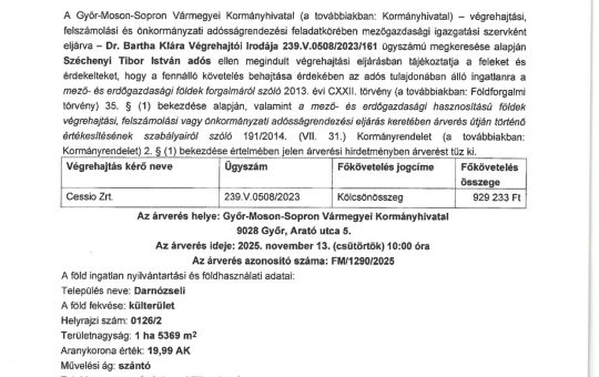 Árverési hirdetmény Darnózseli 0126-1 hrsz.