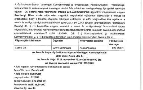 Árverési hirdetmény Darnózseli 0126-2 hrsz.
