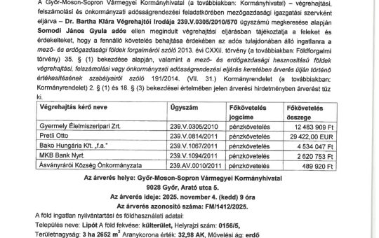 Árverési hirdetmény Lipót 0156-5 hrsz.