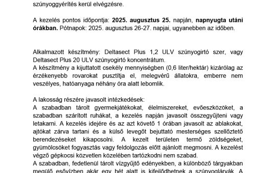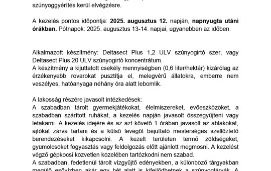Tájékoztatás szúnyoggyérítésről 08.25.