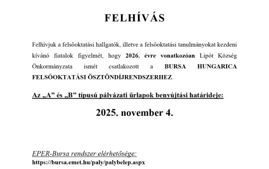 Felhívás Bursa Hungarica ösztöndíjpályázatra 2026
